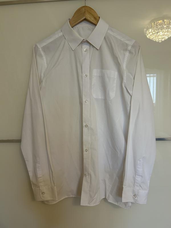 Рубашка в очень хорошем состоянии, но нюанс (фото 3-5) присутствует порез 6 миллиметров, замеры: плечи 43, рукав от плеча 65.