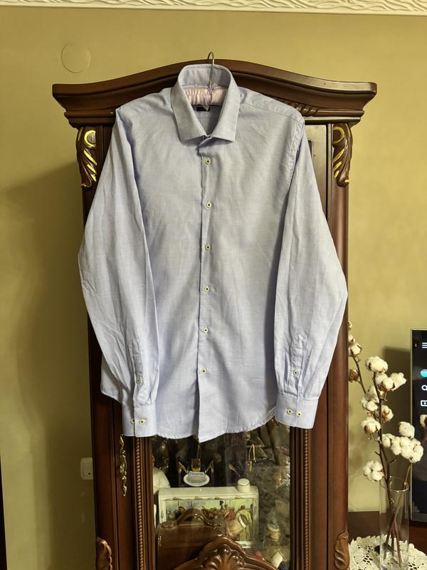 Без дефектов. Рекомендуется на рост 180 и ОГ 100. Не тянется. Структурована тканина. Упитанную цвет намного красивее - лавандово-голубой. Есть брюки к этой рубашке, также Zara. Полуобхват груди 52; талии 49; бедер 52. Длина 70. Рукавчик 65.