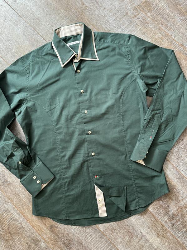Новая, без бумажной бирки Замеры на фото Италия Воротник и манжеты в клетку