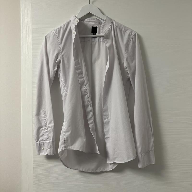 Мужская рубашка Zara XS на 165 см (подойдет для женщин), чисто белого холодного цвета, немного затертых подмышками, но без других дефектов, состояние очень хорошее. Фасон немного удлиненный, прямой.