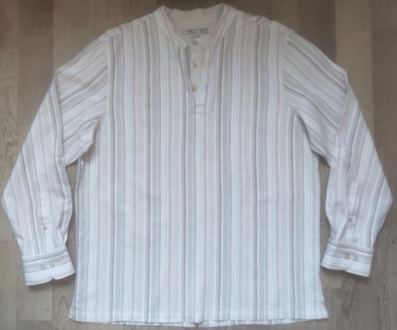 Мужская рубашка Cherokee, размер L Воротник - 46 см, ширина в плечах - 50.5 см, ширина в подмышках- 62.5 см, ширина внизу - 64 см Длина - 79,5 см, длина рукава - 67 см. Состав: 45% cotton, 55% linen Made in China Состояние идеальное, новая, без бирок, не ношенная, без дефектов.