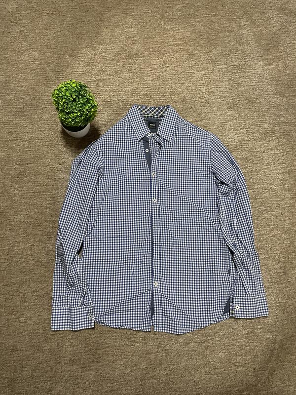 Рубашка Hugo Boss в голубом цвете в клетку в идеальном состоянии без недостатков отправка новой/укр по почте