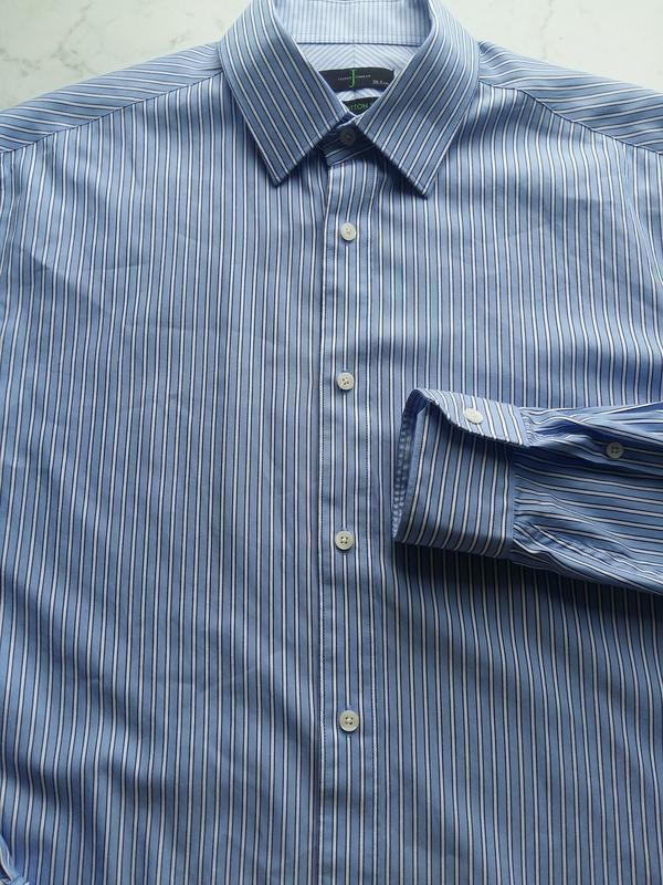 Стильная шелковая рубашка люкс-сегмента Jasper Conran размер М, современный приталенный крой. Замеры: плечи- 49, грудь- 53, рукав- 61, длина по спинке от воротника-79. Состав: 80% хлопок, 20% шелк