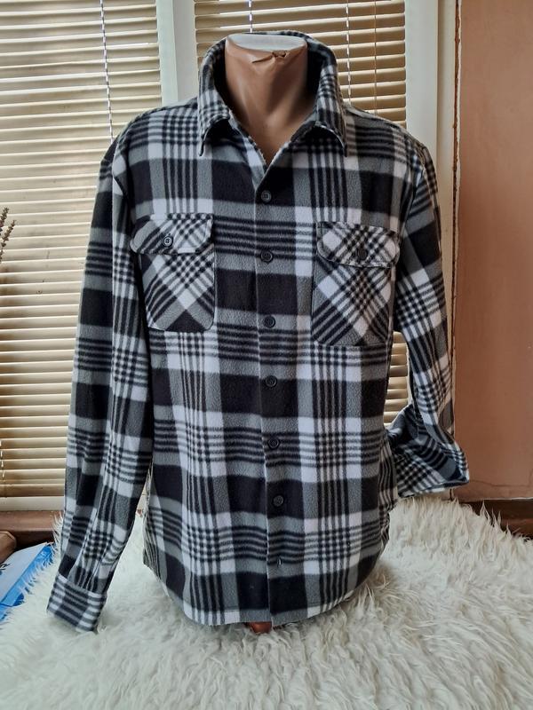 Теплая удлиненная рубашка, мужская, толстый плотный флис, с карманами, размер XXL грудь 62. длина 75, плечи 52, рукав 71