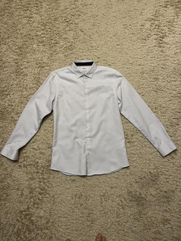 Сорочка ZARA, розмір - L, Slim fit. Заміри: Довжина - 75 см; Довжина рукава - 66 см; Напівобхват в плечах - 50 см; Напівобхват грудної клітки - 51 см. Склад: 60% бавовна, 40% поліестер.