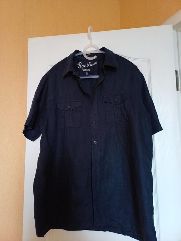 цвет красивый насыщенный темно-темно-синий.ближний к реалию фото 1. качество пошива отличное.два накладных кармана в стиле Сафари с ладонами на пуговице.маленькие разрезы боковые, что хорошо для носки на выпуск.мантики на рукавах. достойное качество льна. мягкий легкий нежарный. одна из самых комфортных тканей на лето.замеры пог 59 см. длина 78 см длина рукава 26 см с манжетом. ширина плеч 47 см.размер L камера не любит темные цвета. состояние идеально