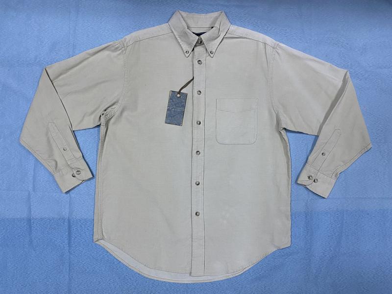 Мужская рубашка вельветовая американского бренда Roundtree & Yorke выполнена в бежевом цвете, производство Сальвадор, материал ( плотный, мягкий ) : 100% хлопок! Материал плотный, концы воротника на внешних пуговицах, манжет на 2-х пуговицах, есть комплект запасных пуговиц! Размер: (болеемерит) US М : ширина (в комди ) - 60 см, длина передней планки - 72 см, длина по спинке (от шва воротника ) - 78 см, рукав (от шва плеча) - 62 см, рукав (от шва проймы ) - 53 см, плечи - 48 см, воротник - 42 см.