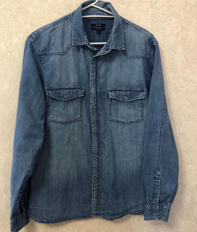 Легкая джинсовая рубашка, на кнопках. Смотрите замеры. Длина - 70 Длина рукава - 63 В плечах - 46 ПОГ - 56 ПОБ - 56