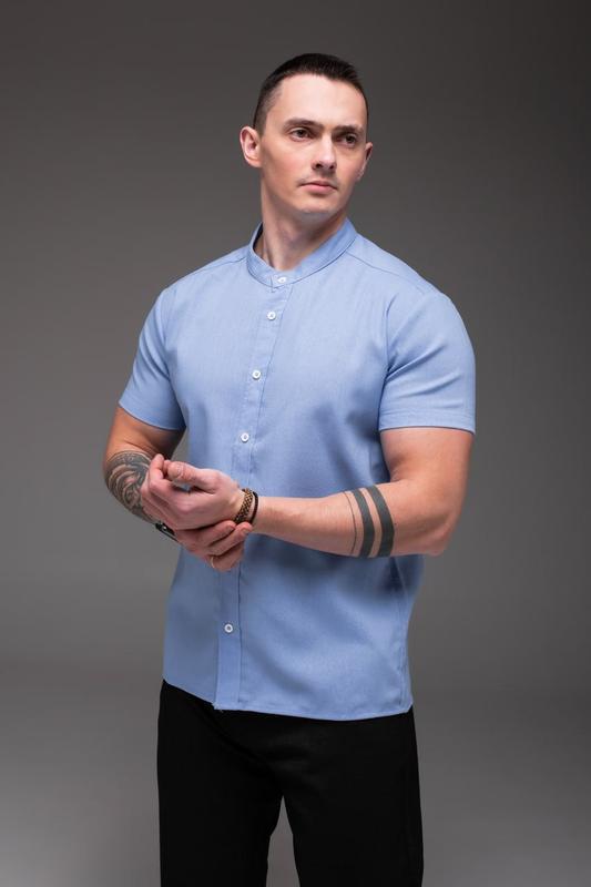 Рубашка с коротким рукавом и воротником стойкой из льна, лен 100%