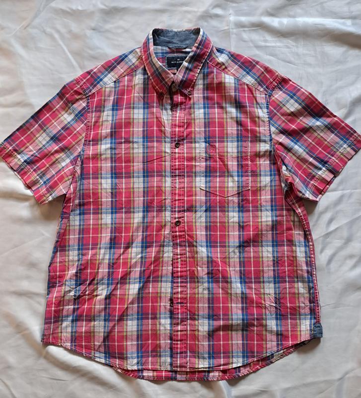 Мужская рубашка Blue Harbour от M&S. 100% качественный хлопок. Размер XL. Плечи 49 см, полуобхват груди 59,5 см, длина 76 см, плечевой шов 18,5 см, рукав 25 см. Стан новой вещи. Безопасной оплатой отправлю только вкрпоштой. После платья и оплата на карту-оправлю через новую почту и вкрпочту.