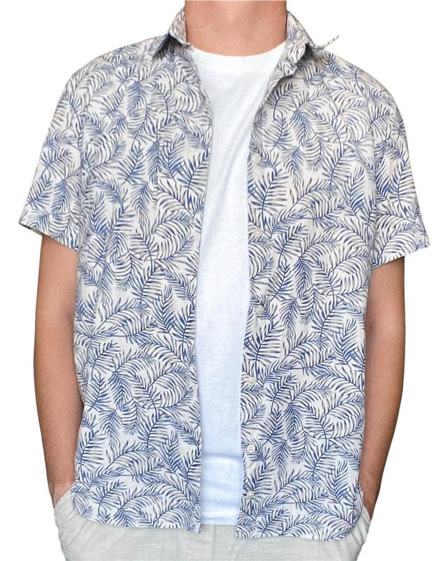 Чоловіча рубашка сорочка шведка вінтаж гавайка принт мужская льон бавовна лён котон