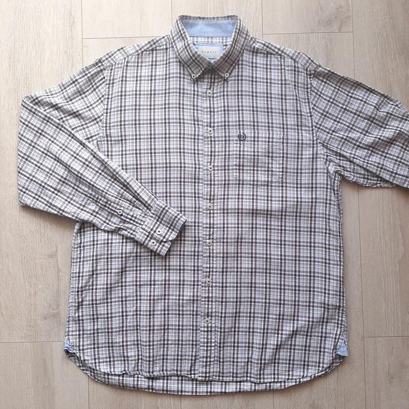 Рубашка бренда Bugatti. Состояние очень красивое. Дефектов нет. Пуговицы брендированные, есть запасные. Крой прямой. Материал тонкий. Есть нагрудный карман. Размер: L 41/42 Плечи: 48см ПОГ: 60см ПОТ: 58см Рукав: 62см Длина по спине: 76см. Состав: 100% хлопок 👔👖👕🧢👟🩴 Больше одежды в ТГ: ecofinds ✅ Подписывайтесь на мою стороночку - часто обновляю ассортимент. ❗ Важно! Обязательно, перед покупкой - прочитайте раздел "Про меня".