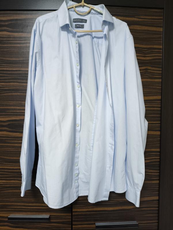 Продам голубую рубашку. Длина 76, полуобхват груди 55, рукав 64,5.