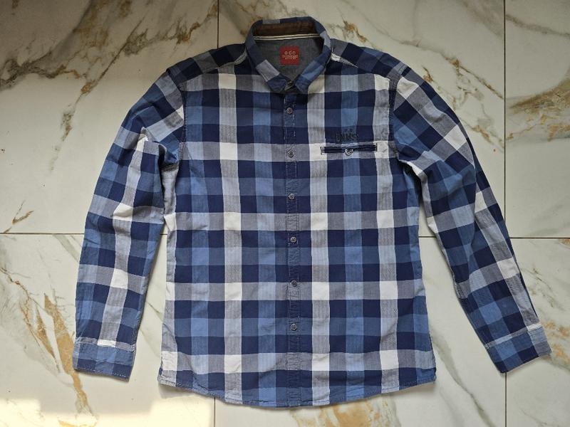 Приталенная натуральная модная рубашка Пог 58 Пот 53 Рукав 65 Длина от плеча 67