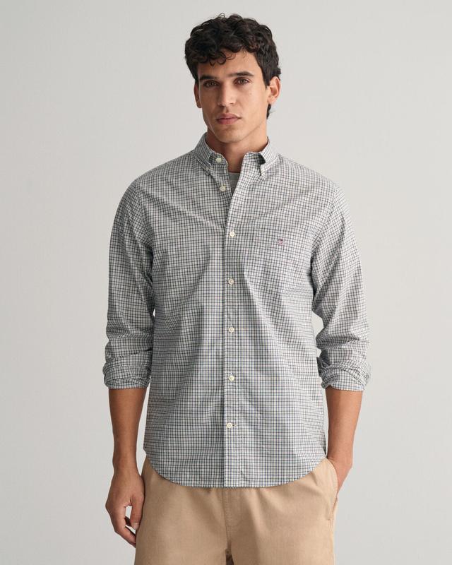 Виготовлена з міцного бавовняного попліну, ця сорочка стане незамінним елементом будь-якого преппі-гардеробу. З візерунком у мікроклітку по всій поверхні, ця сорочка має стандартний крій, комір на ґудзиках, вигнутий поділ та складку-коробку з нашою фірмовою петлею для замка ззаду. На нагрудній кишені її прикрашає вишитий щит GANT у стилі 80-х років. Артикул 7325707486579 Догляд та склад Прати з речами подібних кольорів. Матеріал: 100% бавовна Зріст моделі 188 см, розмір M $130.00