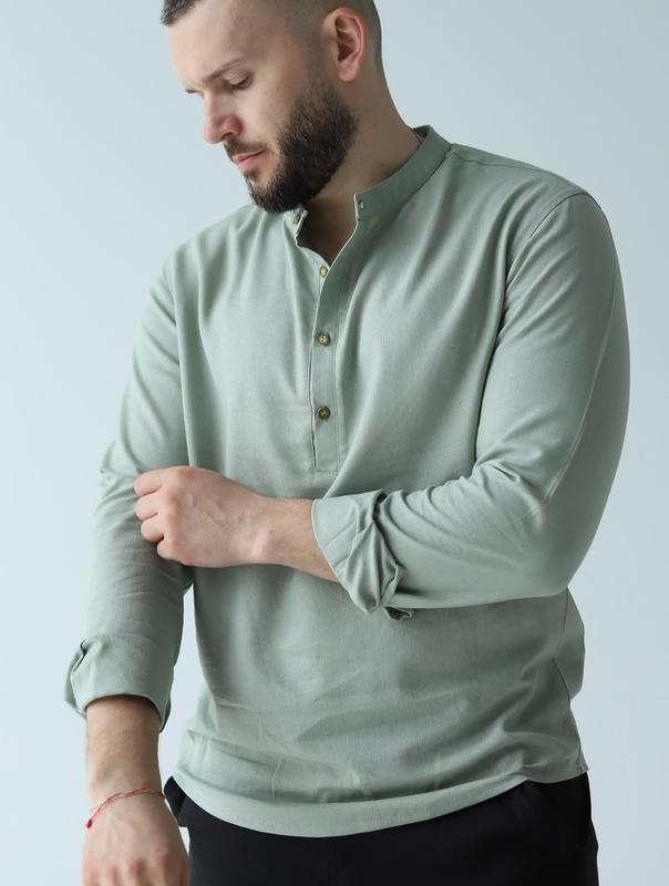 У стані нової, одягалась один раз на урочисту подію Сорочка чоловіча від українського бренду Mirey в розмірі М, колір - олива, сучасний дизайн, дуже гарна Натуральный льон (склад тканини є на фото) Розмірна сітка - на фото. Враховуйте, що тканина не тягнеться Фактичні заміри надаю, за потребою Ціна сайту зараз зі знижкою 950 грн. Продаю по причині, що на чоловіка вона впритик Відправка УП, НП