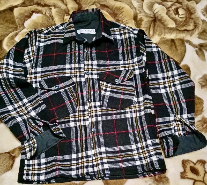 Утеплена сорочка чорного кольору в клітинку. Заміри: - напів обхват грудей - 41 см; - довжина - 57 см