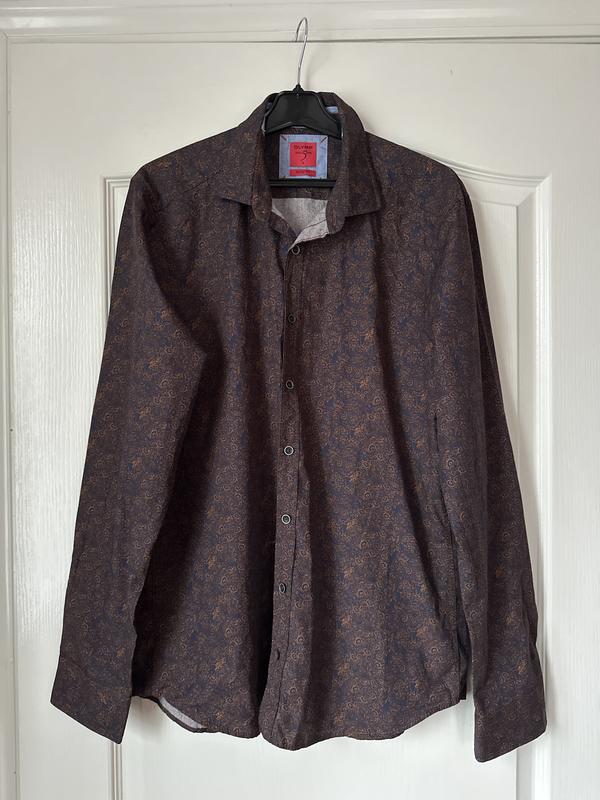 Виробник Німеччина. Дрібний ненавʼязливий принт. Крій по фігурі. Дефектів немає. Довжина 77 Плечі 45 Рукав 66 Ширина в грудях 56