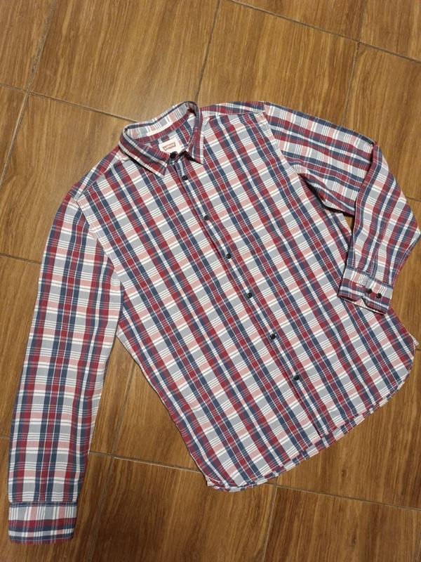 Коттоновая рубашка в клетку от Levis. Размер L. Замер: плечи 46см, пог 57см, длина 72/75см, рукав 65см, бицепс 23см, пот 56см воротник 43см.