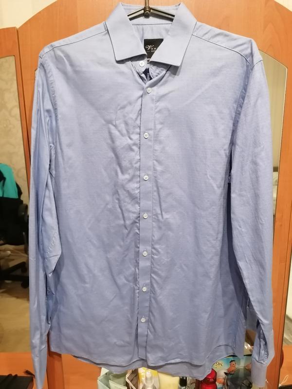Мужская рубашка голубого цвета в мелкую точку ПОГ 57 Длина рукава 68 Общая длина 81