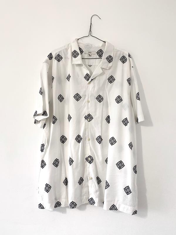 Размер XL Состав: 86% вискоза, 14% полиамид Рубашка свободного кроя с абстрактным принтом В идеальном состоянии без дефектов