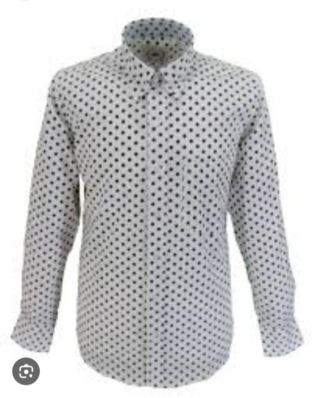 Винтажная рубашка в горошек. имеет классический ко 50сммер на пуговицах, поповую заднюю складки-коробочку и передний сверхгрудный карман.100% хлопок и приталенный край.Длина 74см.Пог 54см.Пот 52см.Рукав 64см