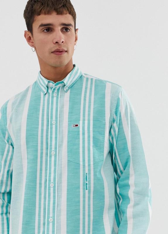 Чоловіча сорочка мʼятного кольору в вертикальну смужку з довгими рукавами від бренду Tommy Hilfiger. 100% бавовна. Розмір L. Стан ідеальний. Заміри: плечі-49, напівобхват грудей-61, довжина-82, рукав-65. Способи замовлення: безпечна оплата або повна оплата на карту. Швидка відправка.