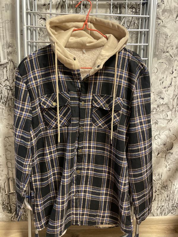 Чоловіча сорочка на хутрі з кнопками розмір М, стан новий, у клітинку не одягалась жодного разу так як не підійшла за розміром завелика. Заміри: довжина рукава 63 см, довжина по спинці 81 см, ширина під руками 58 см, по плечах 52 см