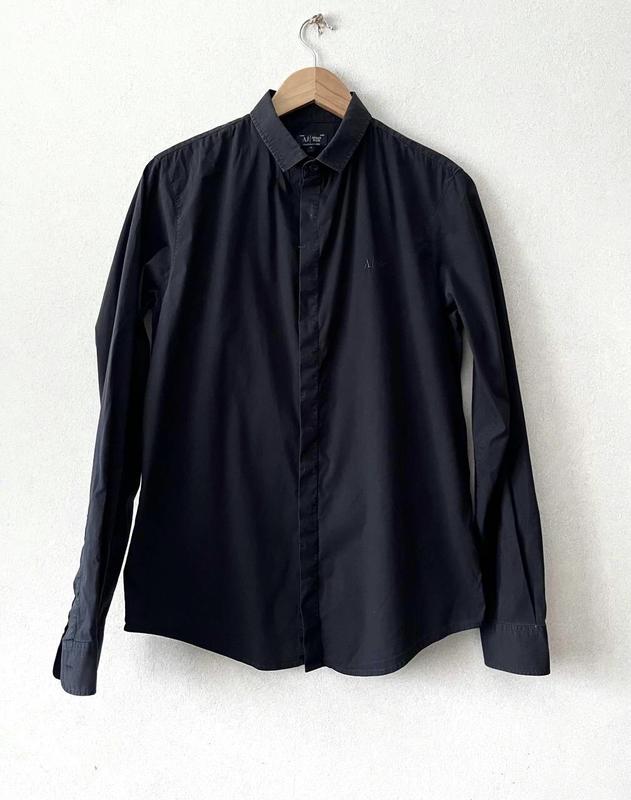 Стан ідеальний Крій extra slim Ґудзики потайні Має легку варку на комірі та манжетах Колір темно-синій/останнє фото в порівнянні з чорним/ Довжина 72 Пог 51 Пос 51 Плечі 42