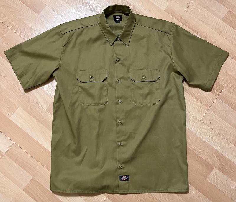 Сорочка DICKIES Short Sleeve Work Shirt Колір:Green Moss (хакі) Заміри:плечі 52 см,під пахвами 62 см,пояс 60 см,висота перед 68 см,висота по спині 82 см.
