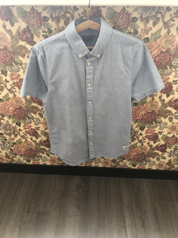 Очень крутая рубашка известного бренда. Приобреталась в официальном магазине. Одета 2раза! Цвет благородный голубой. Размер М.