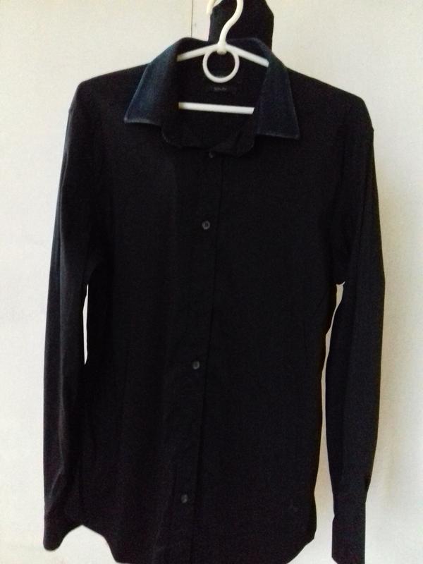Отличная рубашка Diesel.насыщено черного цвета.воротник джинс.Размер М.ткань тянется длина 65см.рукав 65см.в очень хорошем состоянии