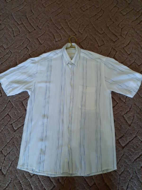 Дуже гарна чоловіча рубашка до короткого рукава,легенька "жатка", в синю полосочку,комір 43,на зріст 174-182