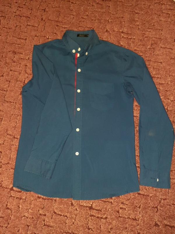 Молодежная синяя рубашка Длина-65см,ширина-46см,рукав-60