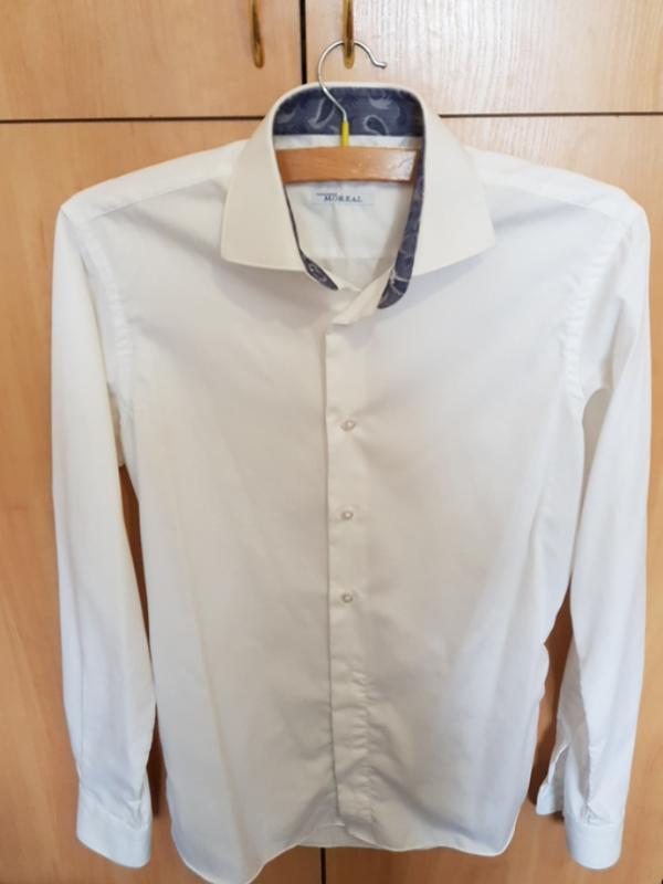Розмір М Гарна та стильна чоловіча сорочка, дорогого бренду. В ідеальному стані, пралася тільки в хімчистці. Заміри Комір - 40 см Плечі - 44 см ПОГ - 51 см Рукав - 65 см Довжина - 74 см