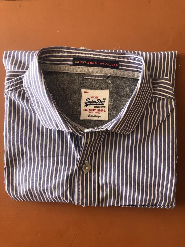 Сорочка SuperDry розмір L (заміри: плечі 42, ПОГ 53, низ 51, рукав 66, довжина по спині без ворота 69), виконана з м'якої бавовни. Стан нової речі без дефектів і слідів шкарпетки.