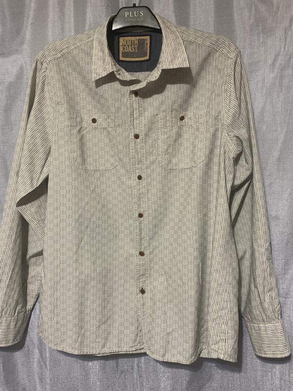Бавовняна сорочка . Замеры: длина - 75см., плечи - 48см., рукав - 68см., ПОГ - 61см., ПОТ - 57см., ПОБ - 60см
