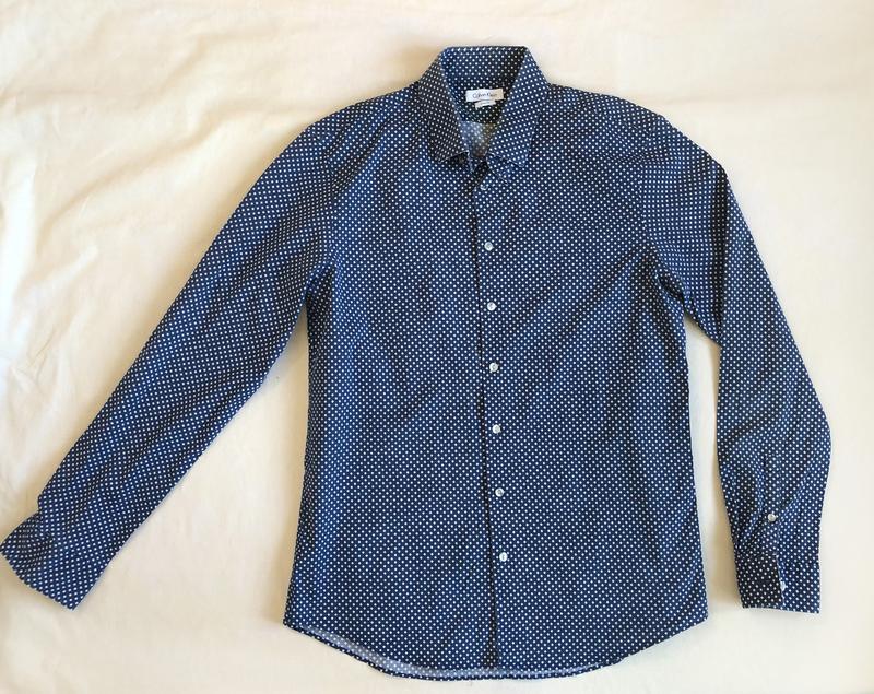 Сорочка Calvin Klein Розмір 42 (дивіться виміри!) Склад: 98% бавовна, 2% elastane По спині йдуть приталені виточки Комір на вигині трохи стертий Ширина плечей 44 см Довжина рукава 64,5 см Обхват грудей 106 см Довжина виробу по спині від шиї до низу 76 см До сорочок є великий вибір шовкових краваток, краваток-метеликів, дивіться в моїх оголошеннях Доставка через Нову пошту, Укрпошту, Justin, Meest