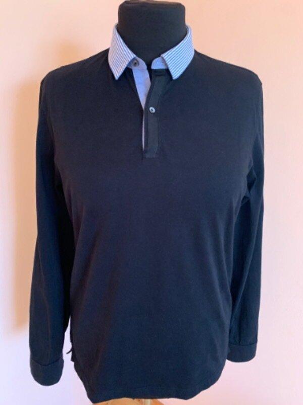 Класний котоновий реглан присланий з Іспанії. Розмір ХЛ вказано. Довжина- 72см, плечі-47см, рукав від плеча- 67,5см, пог- 57см,до низу пряма. Колір чорний.Cтан нового.