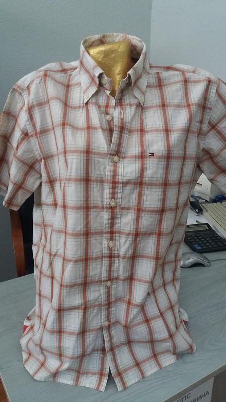 Бежевая легкая тенниска рубашка в клетку tommy hilfiger раз.m-l