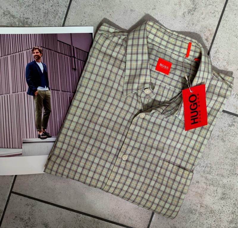 Мужская элегантная хлопковая базовая тениска hugo boss в клетку размер l