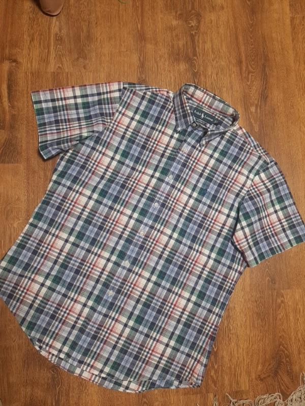 Базовая тенниска в клетку. Размер L. Замер: плечи 47см, пог 59см, длина 80см, рукав 24см, воротник 40-41см.