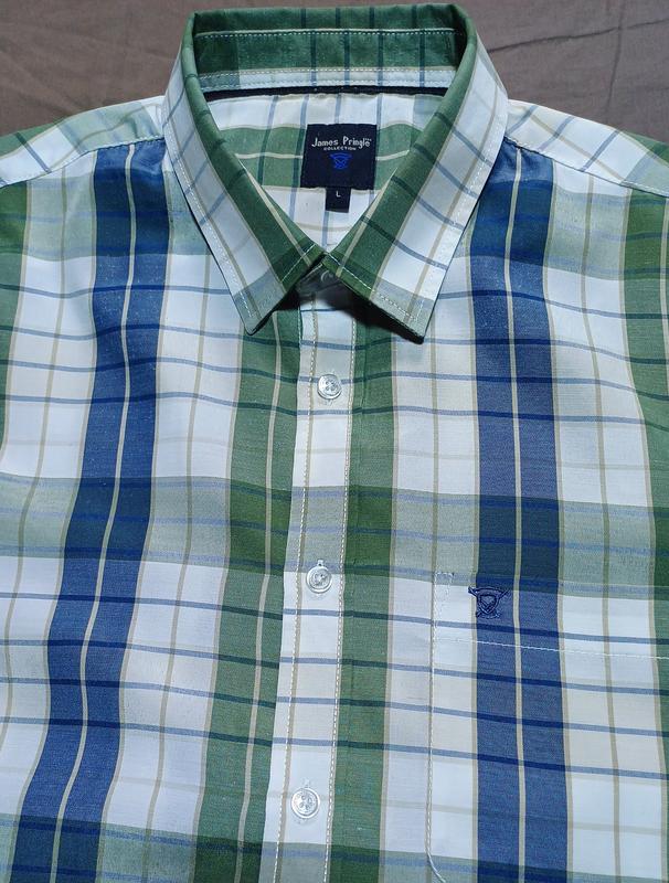 КОМИР 43 СМ JAMES PRINGLE SIZE L ТЕНИСКА В КЛЕТИНКУ MADE IN UK замеры: 1) ширина плеч 49 см 2) обхват груди 64 см 3) обхват талии 60 см 4) длина по спине 76 см 5) длина рукава 26 см