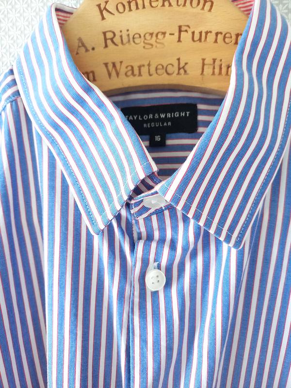Тенниска из хлопковой ткани в полоску. Имеет нагрудный карман. Стан идеален. Размер по набору 16. Замеры: грудь - 58см, плечи - 47см, длина по спинке - 78см.