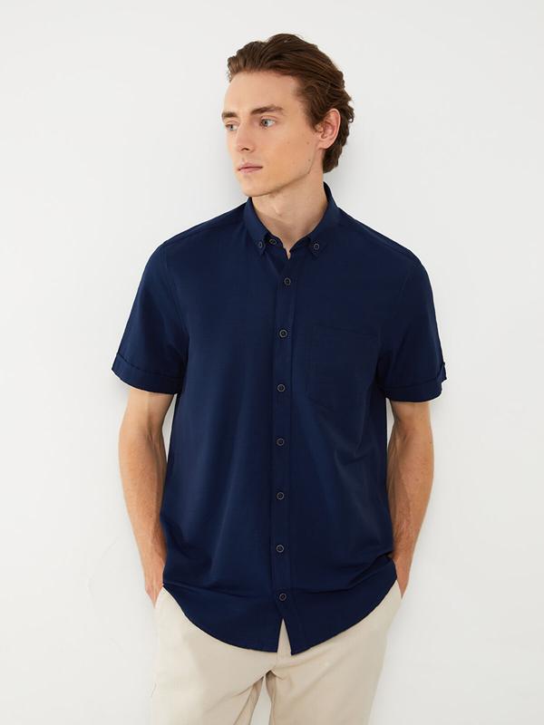 Lc waikiki синяя рубашка тенниска хлопок 3xl летняя пляжная базовая батал большой размер