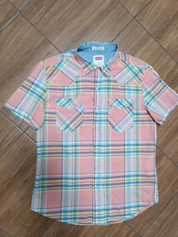 Легкая коттоновая рубашка от Levis. Размер М. Замер: плечи 44см, пог 54см, длина 72см, рукав 22см, пот 51см. Светлый цвет.