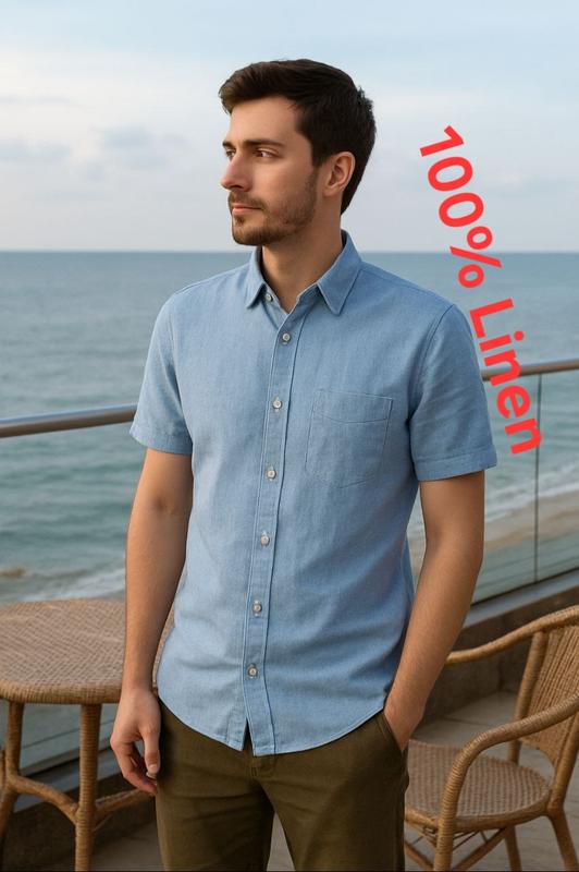 Практичная мужская льняная рубашка с короткими рукавами celio made in bangladesh