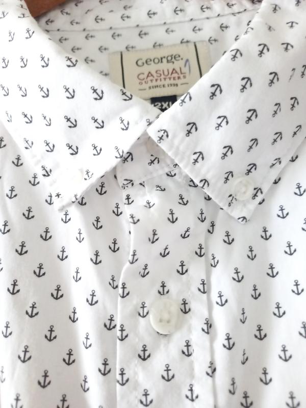 Белого цвета в якоре хлопковая мужская тенниска. Мягкий воротник баттон-даун. Стан идеален. Размер по набору XXL. Замеры: под руками - 69см, плечи - 51см, длина по спинке - 78.