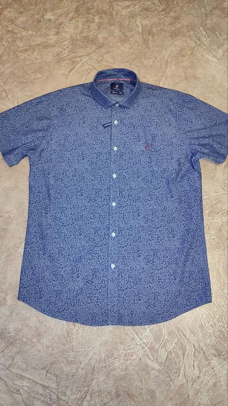 Рубашка с коротким рукавом POLO, размер L. Оригинал, новая, без этикетки. Ткань 100%хлопок, под джинс. Замеры: длина 78см, ширина 58см, плечи 48см, рукав от плеча 20см.