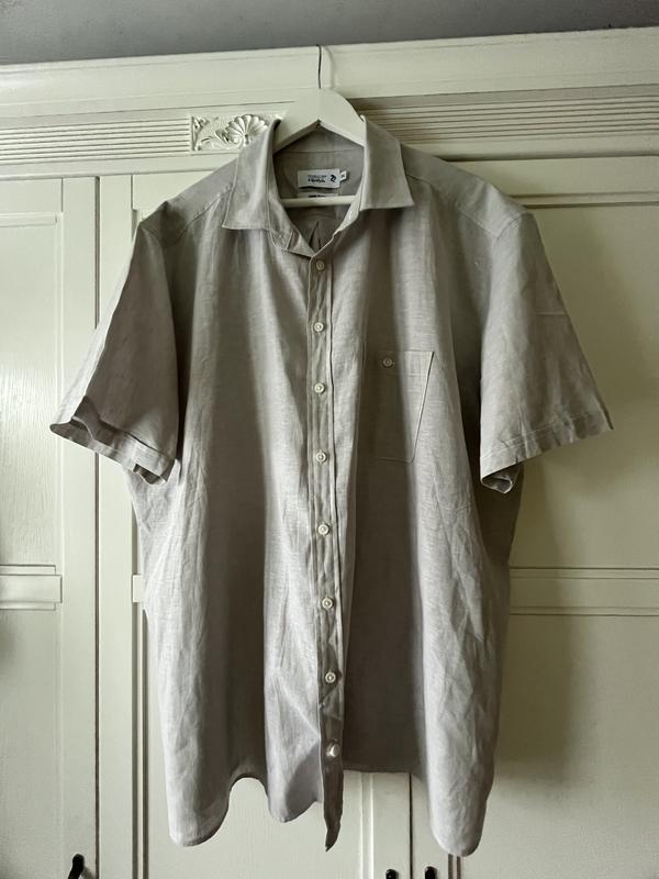 Льон + бавовна, тоненька, приємна на дотик, ідеальна у спеку, плечі 58 см, пог 79 см, довжина 85 см